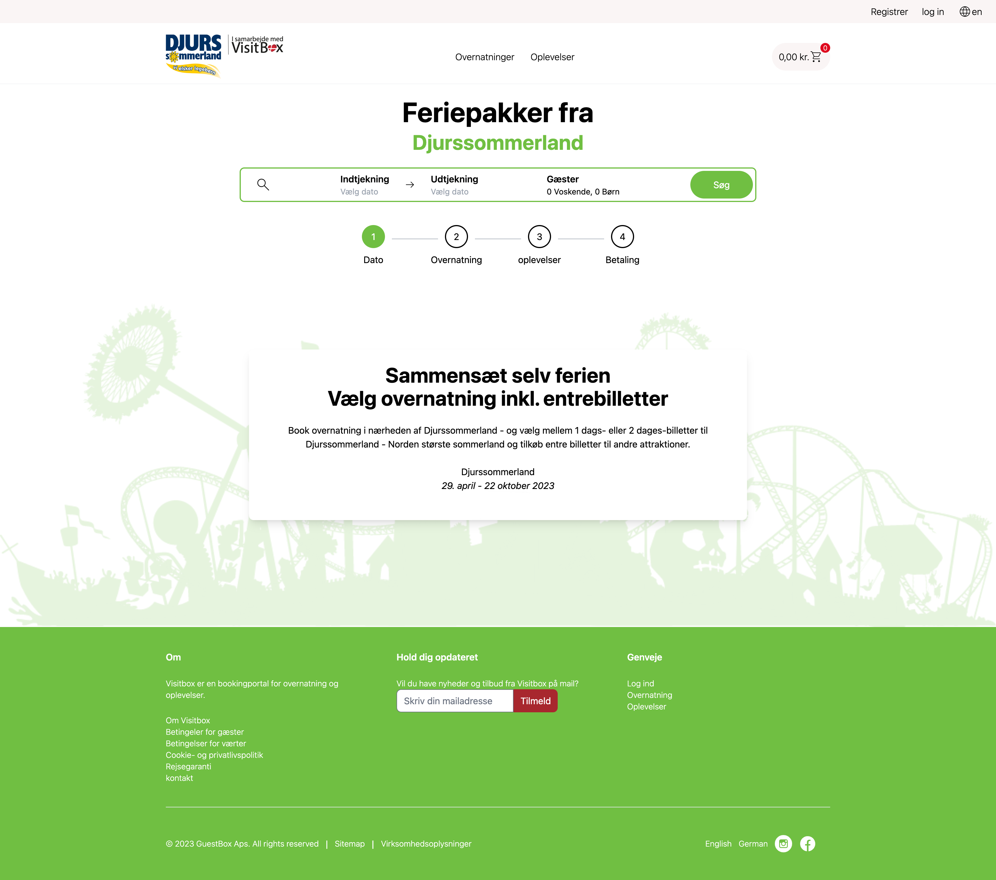 På booking portalen visitbox.dk har samlet et omfattende udvalg af overnatningsmuligheder, oplevelser, attraktioner og events. Dette giver vores gæster mulighed for at planlægge og tilpasse deres ophold eller ferie for at sikre den bedst mulige oplevelse. Ved køb fra Visitbox sender vi én samlet pakke med ordrebekræftelse, ankomstinformation og billetter. Nemmere bliver det ikke.